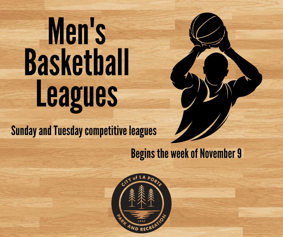 Get ready to lace up your sneakers and hit the court! Men's Basketball Leagues, held at the La Porte Civic Auditorium return the week of November 9. Registration is now available with packets mailed to previous team managers. Packets are also available at the Park Office (250 Pine Lake Avenue), HERE or at www.quickscores.com/laporte.